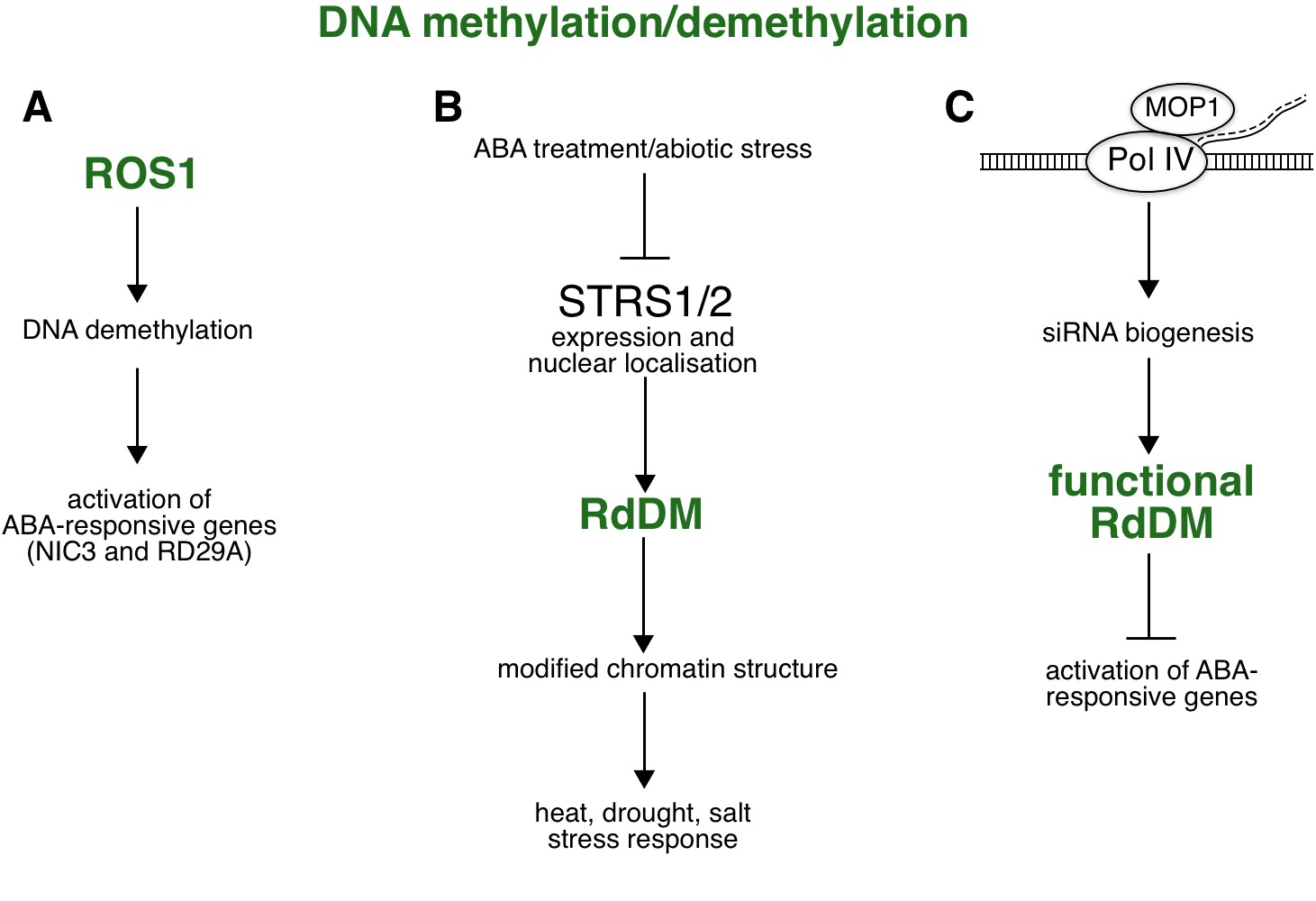 ABA DNA methylation histone modifications histone variants plant stress response RdDM small non-coding RNA