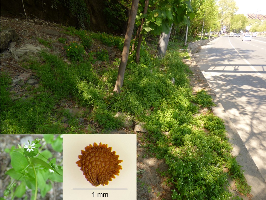 Fig. 2.Stands of Stellaria ruderalis in the understory of a disturbed nutrient-rich forest, dominated by Acer spp. (A) with inflorescence (B) and seed details (C), Georgia, Tbilisi, Zviad Gamsakhurdia Embankment, April 26, 2022. (Photo: P. Novák – A, B, P. Hubatka – C).